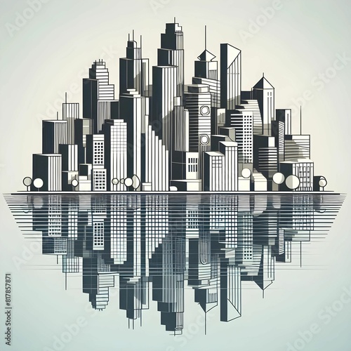 © Alper, Fototapeta premium Stylized, geometric cityscape, reflecting in water, vector illustration