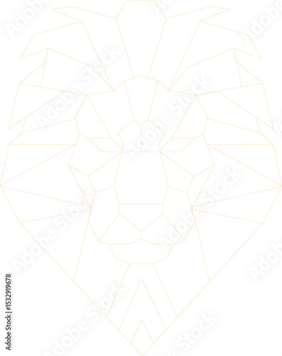 © vectorfusionart, Naklejka premium Stylized geometric lion head is shining in flat design with golden segments, transparent background