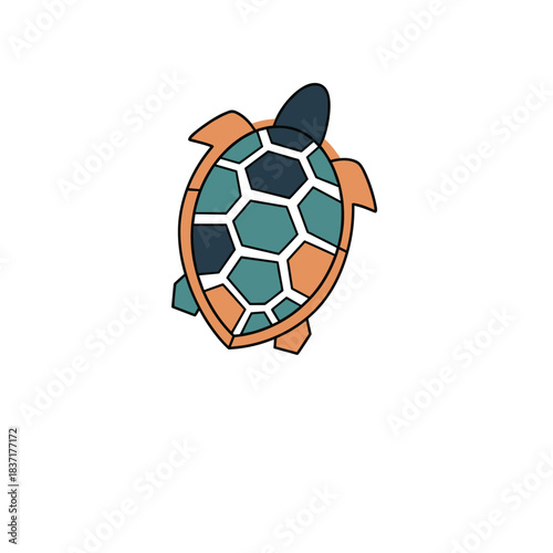© Sugar, Obraz premium Stylized Geometric Turtle Illustration with Hexagonal Shell Pattern.