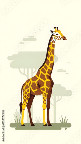 Fototapeta premium Stylized Giraffe Illustration Standing in African Savanna Landscape