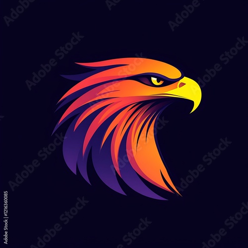 © Nayon, Obraz premium Stylized golden eagle design with radiant metallic wings on backdrop