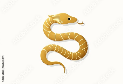 Fototapeta premium Stylized Golden Snake Vector Art: Curvy S-Shape with Segmented Body, Forked...