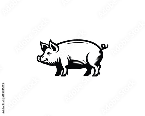 © Stock Nest, Fototapeta premium Stylized graphic of a happy domestic pig looking left, vector