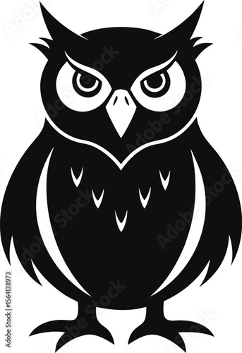 © MD SHUVO AL SHAIED, Fototapeta premium Stylized graphic of an angry or serious horned owl. Black and white vector illustration of a bird of prey, suitable for a logo or mascot. Fierce animal symbol isolated on a white background.