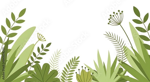 © time, Naklejka premium Stylized Green Foliage and Floral Elements on White Background, Decorative Illustration.