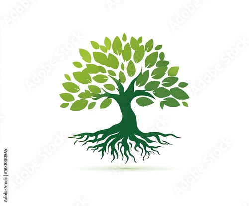 Fototapeta premium Stylized green tree graphic, lush foliage and deep roots