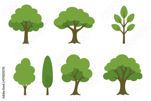 Naklejka premium Stylized green trees and foliage icons representing nature and environment...