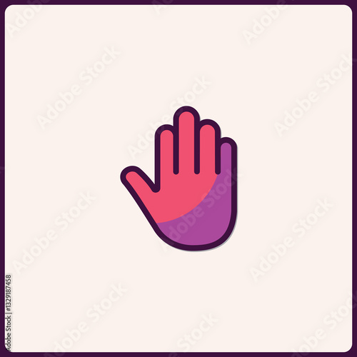 Fototapeta premium Stylized hand icon in vibrant pink and purple color, clean line art
