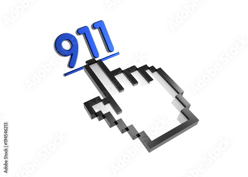 Obraz premium 911. Stylized hand pointer on link. 3D render. Isolated on white.