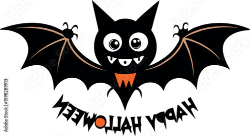 Fototapeta premium Stylized Happy Halloween Design Featuring a Black Cat with Spooky Elements...