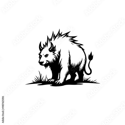 © LgsDesign, Obraz premium Stylized horned beast rendered in monochrome evoking mythical symbolism