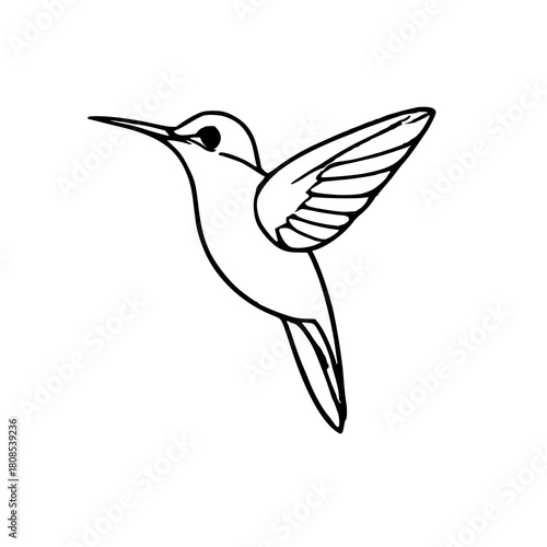 © Rana, Obraz premium Stylized Hummingbird Icon: Single, Line Art, Black