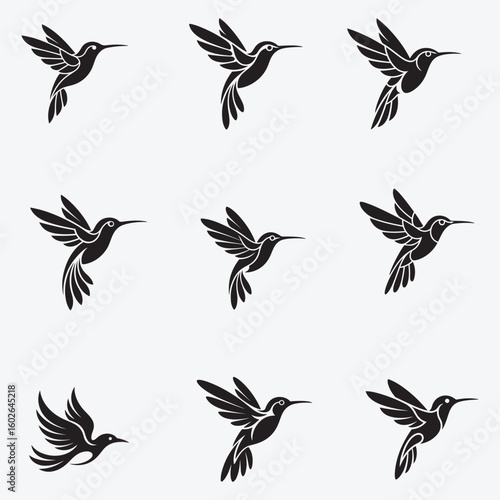 Obraz premium Stylized Hummingbird Silhouette Vector Icon in Black and White, Art &...