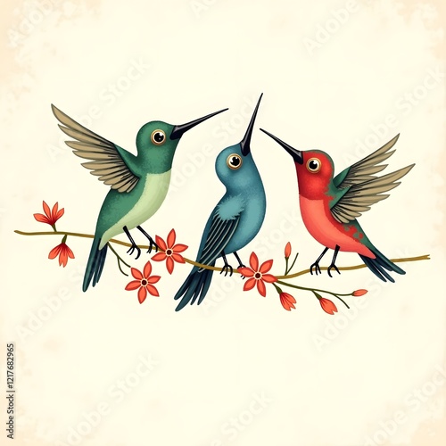 © Best product adobe S, Obraz premium Stylized Hummingbirds image