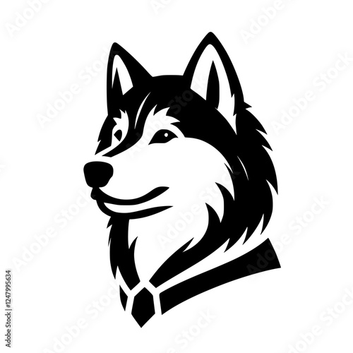 Naklejka premium Stylized Husky Portrait: Black and White, Simplified, Headshot, Sleek,...