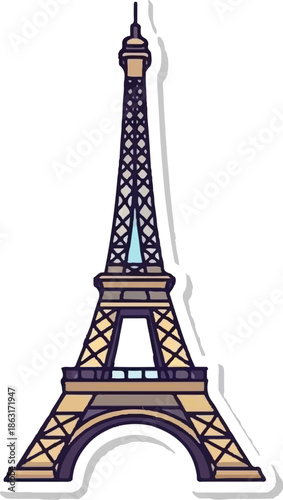 Obraz premium Stylized illustration of a famous tower, with intricate lattice work and...