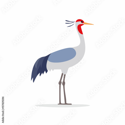 Obraz premium Stylized Illustration of a Grey Crowned Crane with Red Crest and Feathers