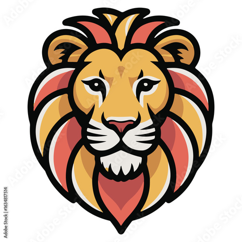 Obraz premium Stylized illustration of a majestic lion head with a vibrant mane in warm...