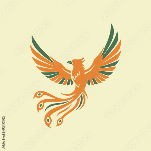 Obraz premium Stylized illustration of a phoenix bird with spread wings and flowing tail feathers