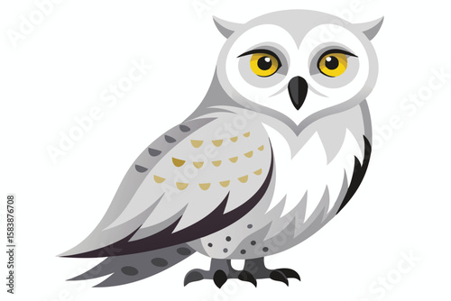 © Bablu, Fototapeta premium Stylized Illustration of a Regal Owl with Piercing Yellow Eyes and Detailed Feather Patterns on a White Background