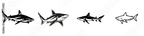 © yailek, Fototapeta premium Stylized illustration of a shark swimming among smaller fish, isolated on a white background.