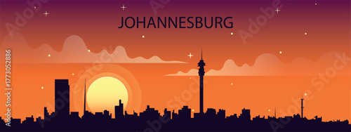 Naklejka premium Stylized illustration of the Johannesburg skyline against a bright sunset.