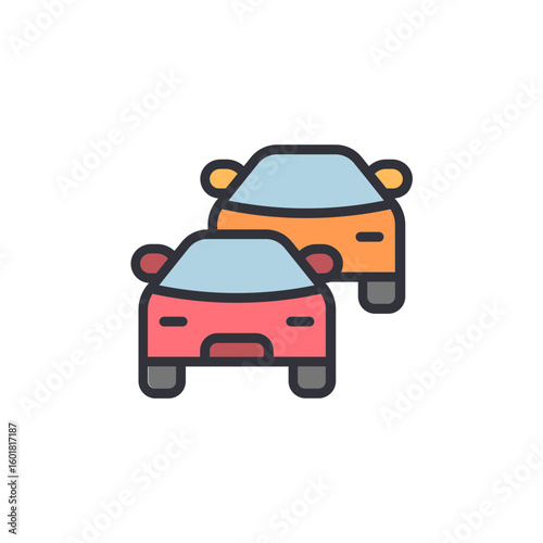 Fototapeta premium Stylized Illustration Of Two Cars Racing With A Transparent Overlay