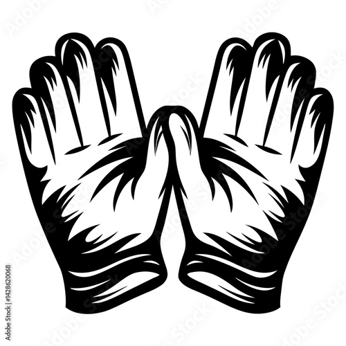 Obraz premium Stylized illustration of two hands pressed together in graphic black and white