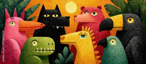 © Mega, Naklejka premium Stylized illustrations of animals, with bright colors, grouped together