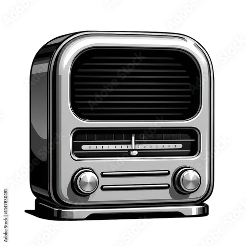 © MDNANNU, Obraz premium Stylized image of a classic radio, featuring its iconic curved shape, prominent grille, tuning interface, and knobs.
