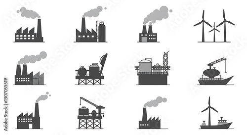 Naklejka premium Stylized industrial icons - balance between energy production - for website illustration