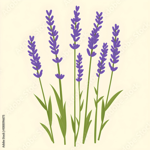 Fototapeta premium Stylized lavender stalks with flat purple flower spikes and green stems