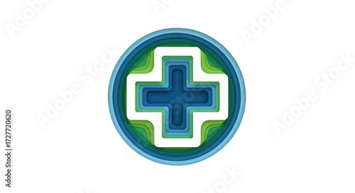 Fototapeta premium Stylized Layered Blue and Green Medical Cross Icon in Circle.