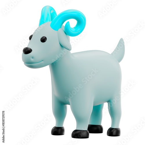 © Masum, Fototapeta premium Stylized light blue ram with bright horns 3d illustration