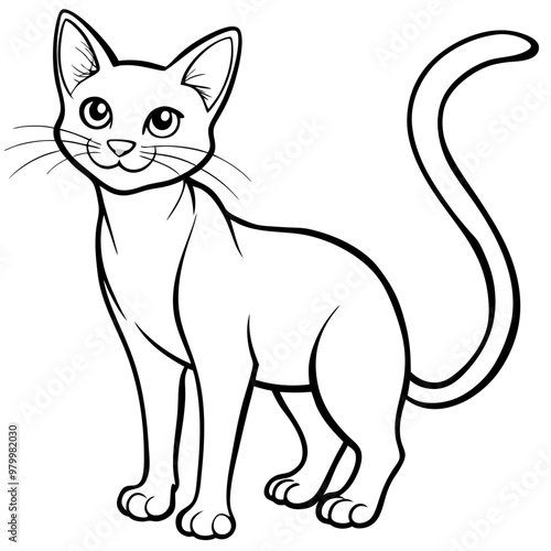 © design master, Fototapeta premium Stylized line art Cat with Curved Tail and Alert Ears Vector