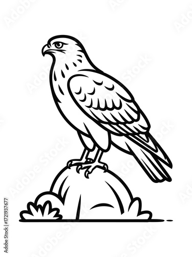 © ariyan, Obraz premium Stylized line drawing of a majestic falcon perched on a rock