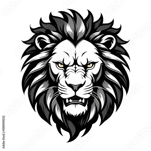 © Thachakrit, Obraz premium Stylized lion face angry logo, black silhouette, clean and isolated on a transparent background