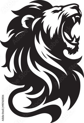 Fototapeta premium Stylized lion silhouette, roaring pose, black and white illustration