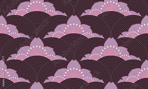 Fototapeta premium stylized lotus pond seamless pattern pink and purple shades