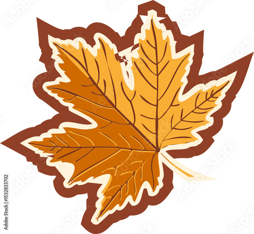 Obraz premium Stylized maple leaf showing orange yellow lobes, brown veins, cream outline,...