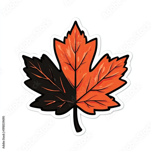 Obraz premium Stylized maple leaf split vertically, half bright orange, half black