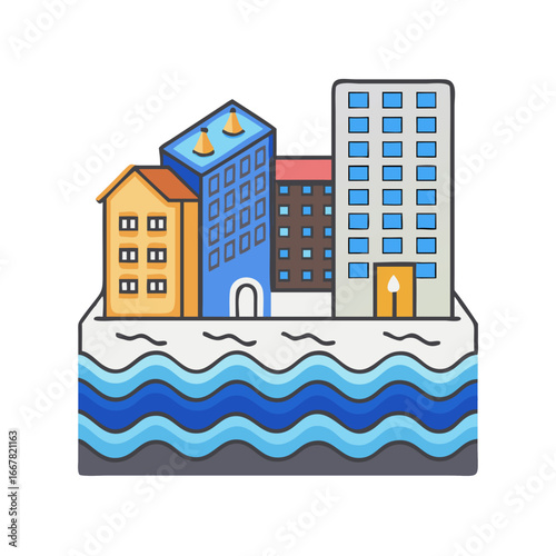 Fototapeta premium Stylized modern city skyline on water illustration for branding or digital design.