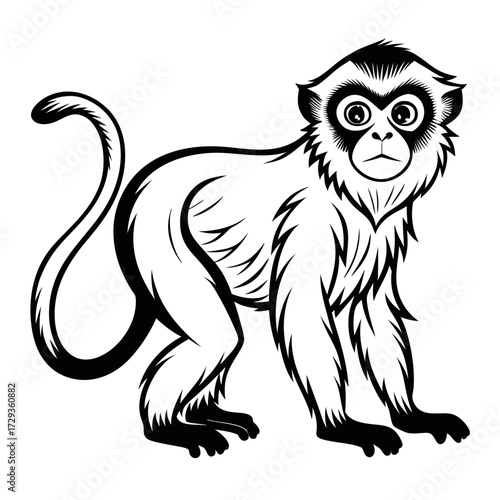 © Ohid Rahman, Obraz premium Stylized monkey illustration in black and white vector format