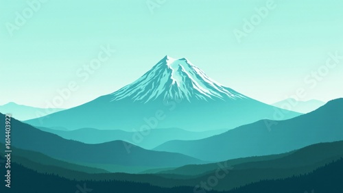 © Chrishen, Fototapeta premium Stylized Mount Fuji Landscape with Teal Hues