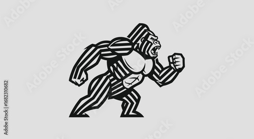 Obraz premium Stylized muscular gorilla mascot in black and white stripes.