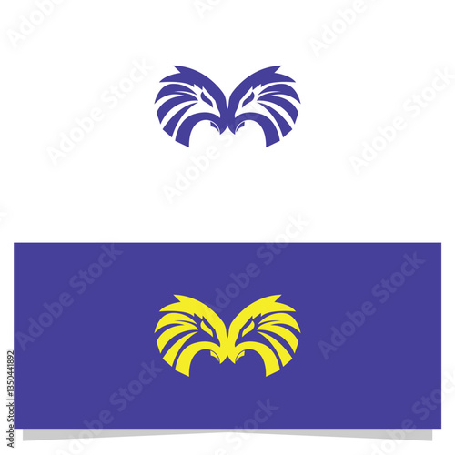 Obraz premium Stylized Owl Face Logos in Blue and Yellow for Brand Identity