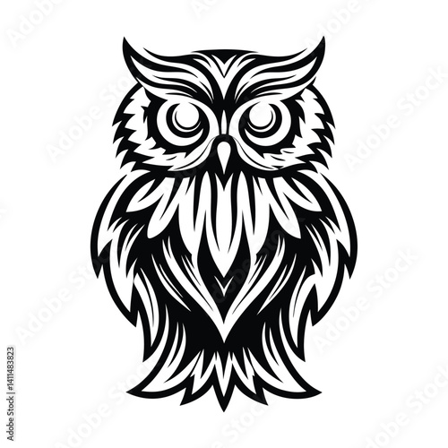 Fototapeta premium Stylized Owl Illustration, Black and White Design, Detailed Feathers,...