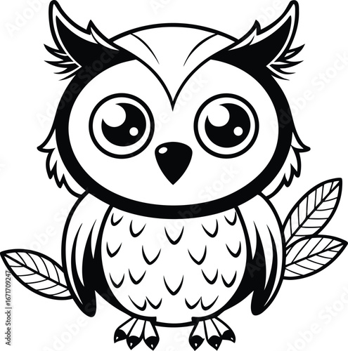 © Mithun, Fototapeta premium Stylized Owl Illustration Cute Black and White Design Featuring Big Eyes and Feathered Details for Graphic Projects