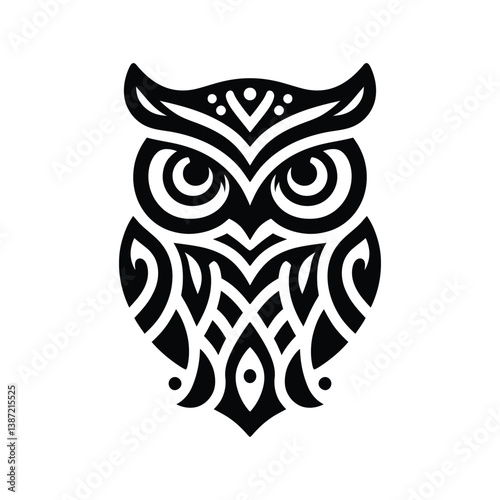 © UMMI, Obraz premium Stylized Owl Illustration with Tribal Design Elements in Black and White