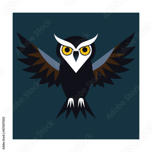 Fototapeta premium Stylized owl with outstretched wings on dark blue background